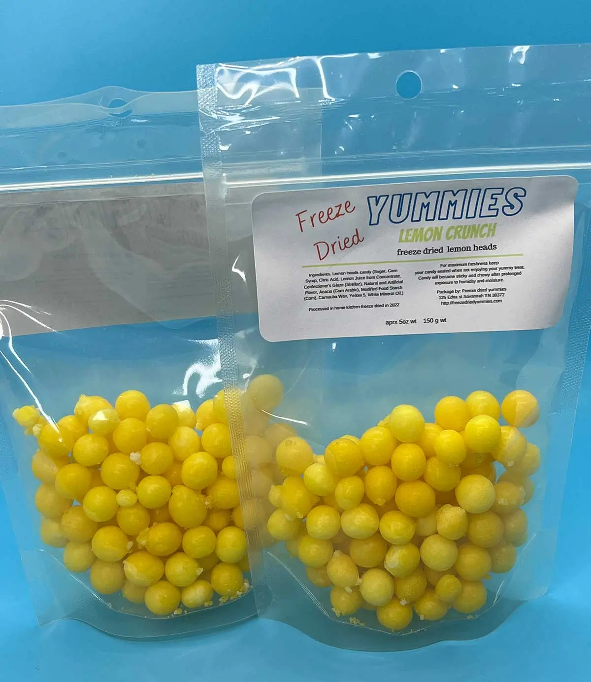 lemon crunch is a tasty, crunchy sour treat. Made from real lemon heads candy and freeze dried. Enhanced sour lemon flavor, crunchy texture